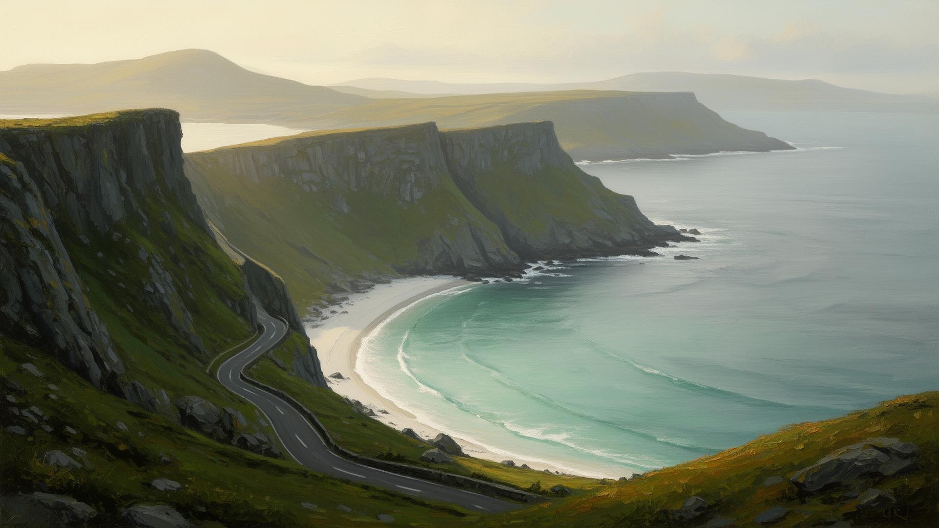 A Blue Flag horseshoe at the western end of the island, accessed by a steep cliffside road that tour buses can't take. Basking sharks return each summer to feed in the bay; Heinrich Böll wrote about Keem in his Irish Journal. The cliff approach itself is part of the experience.