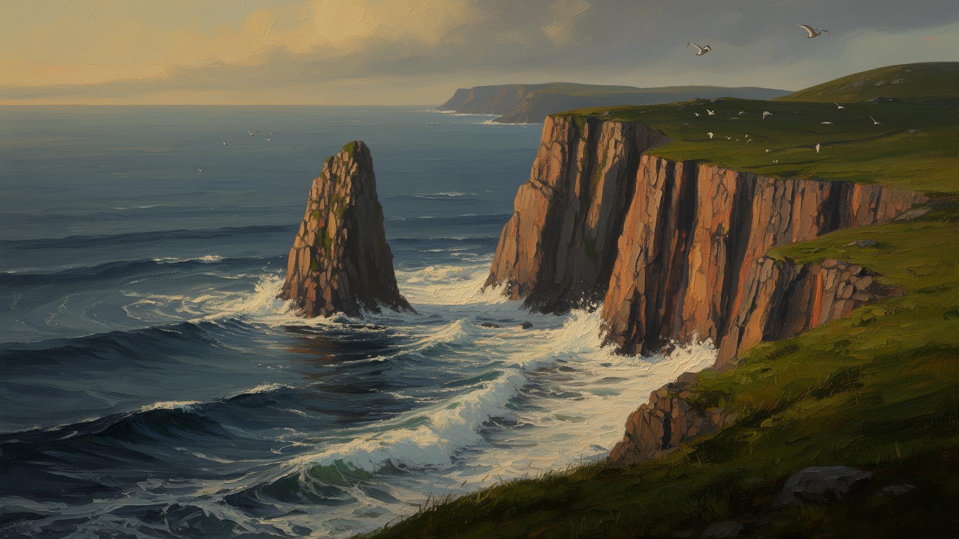 A 5,500-year-old Neolithic farming landscape — stone walls, enclosures, tombs and houses — preserved beneath the blanket bog and now exposed by peat-cutting and survey. The world's oldest known field system. A pyramid-shaped visitor centre on the cliff edge, with a viewing platform looking over the unforgiving Atlantic the early farmers somehow lived beside.