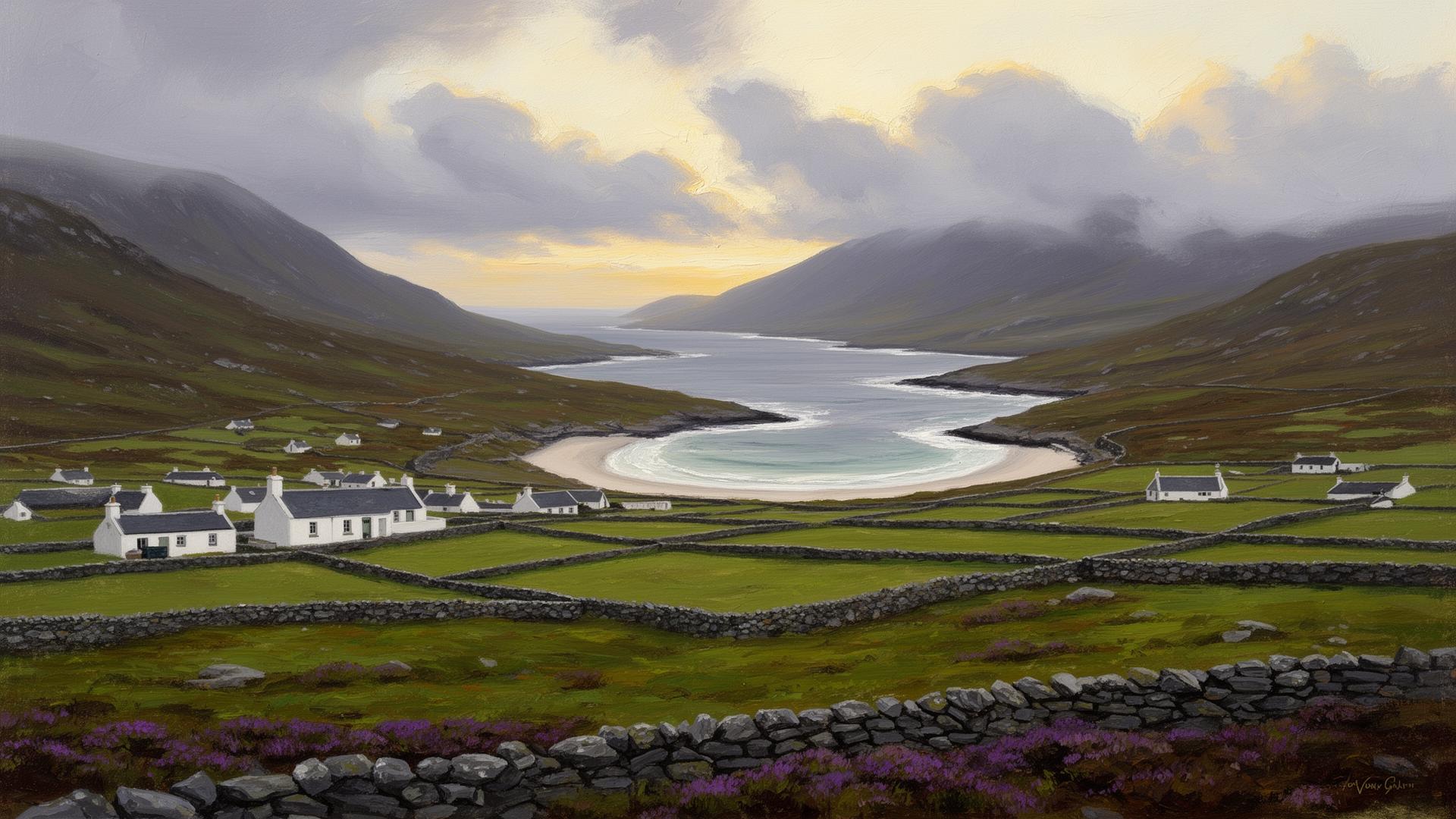 A cluster of thatched cottages above the strand, opened in 1967, each furnished as a different period of Donegal rural life — 1700s, 1800s, 1900s. Founded by Father James McDyer, a parish priest who fought emigration with co-operatives, knitwear, a holiday camp and this museum. Tea-room serves seaweed scones.