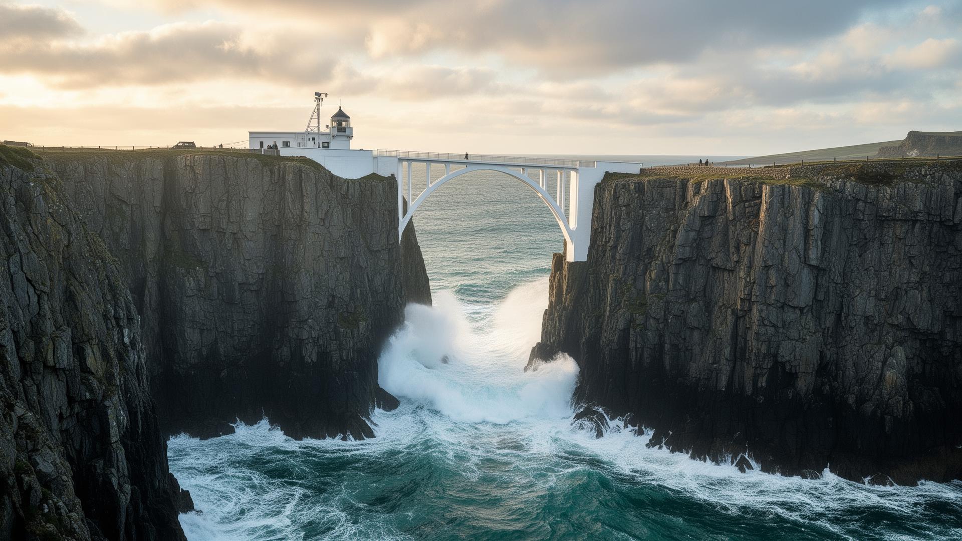 Walk the long zig-zag down the cliff, cross the arched footbridge over the chasm, and explore the 1909 signal keepers' quarters. Exhibits on the Marconi wireless tests, the Fastnet, and the lives of the keepers. The bridge crossing is the moment — a 50-metre drop to the Atlantic on either side.