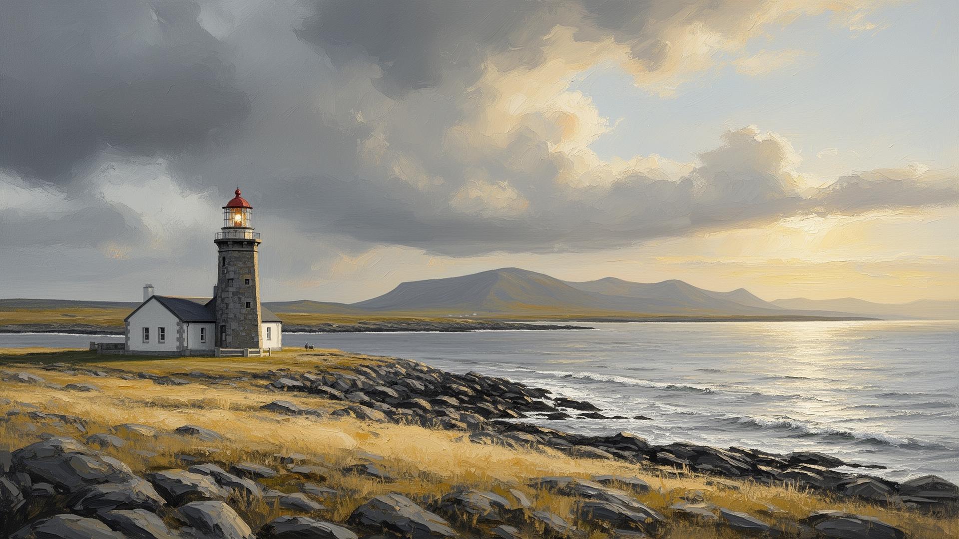 A square granite lighthouse built in 1864 on the southern tip of the Mullet. On 3 June 1944, keeper Ted Sweeney's hourly weather report — recording a falling barometer over the North Atlantic — was relayed to General Eisenhower in England. Eisenhower postponed the Normandy landings by 24 hours. A small museum in the keeper's quarters tells that story.